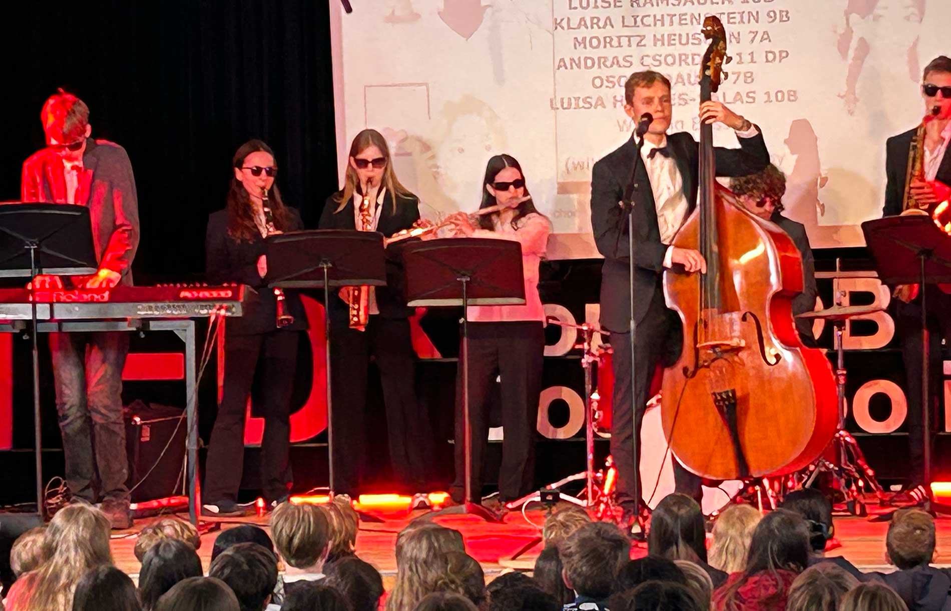 - Ein besonderer musikalischer Moment war das Lied „Walking Bass“, das von Schülern der Klasse 10b mit einem angepassten Text von Henri Bauckhage vorgetragen wurde und eine Verbindung zwischen Musik und dem Thema Erste Hilfe herstellte.