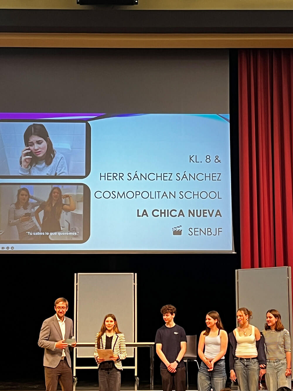 Herzlichen Glückwunsch an alle beteiligten Schülerinnen der Klasse 8 (E. Aebi, A. Briest, M. Goos, J. Plog, O. von Schubert, K. Arnreiter, O. Carpani, M. Lesenarova, E. Ruiz, Greta Wengierek, A. Schnitger) sowie an Herrn Sánchez Sánchez für diese großartige Leistung!